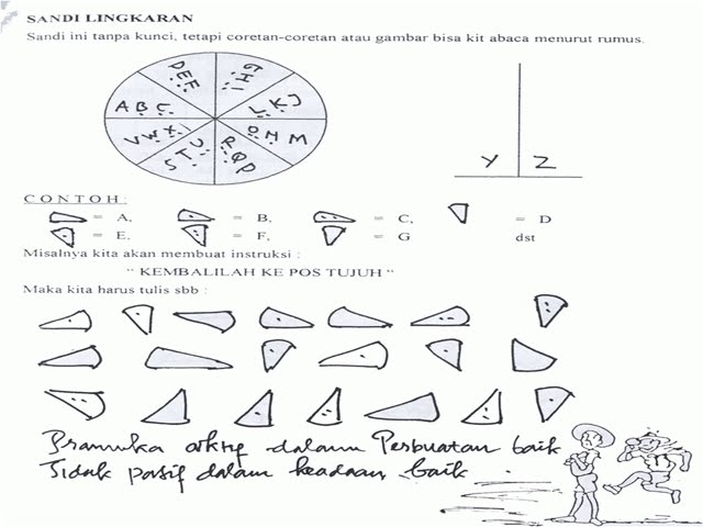 Demikian sedikit tambahan pengetahuan dari pasuda, semoga bermanfaat. Mengutip dari buku scout book: Sms sandi morse semaphore scout of grafika. Dan jika huruf aslinya di bawah, cari penggantinya di bawah. Sebagai contoh, diberikan kata sandi cenzhxn. Tanda baca ataupun angka, tidak berubah. Huruf tersebut dicari berdasarkan huruf penggantinya. Bank soal pu pk sandi morse semaphore tali temali dll pengetahuan u. Latihan soal sandi semaphore kombinasi an az paku morse dan. Untuk mengenali jenis sandi, seperti disebutkan di atas, cukup mudah, . Belajar sandi pramuka sangat seru. Contoh soal sandi morse pramuka. 43 kumpulan sandi pramuka terlengkap 2018 5 .